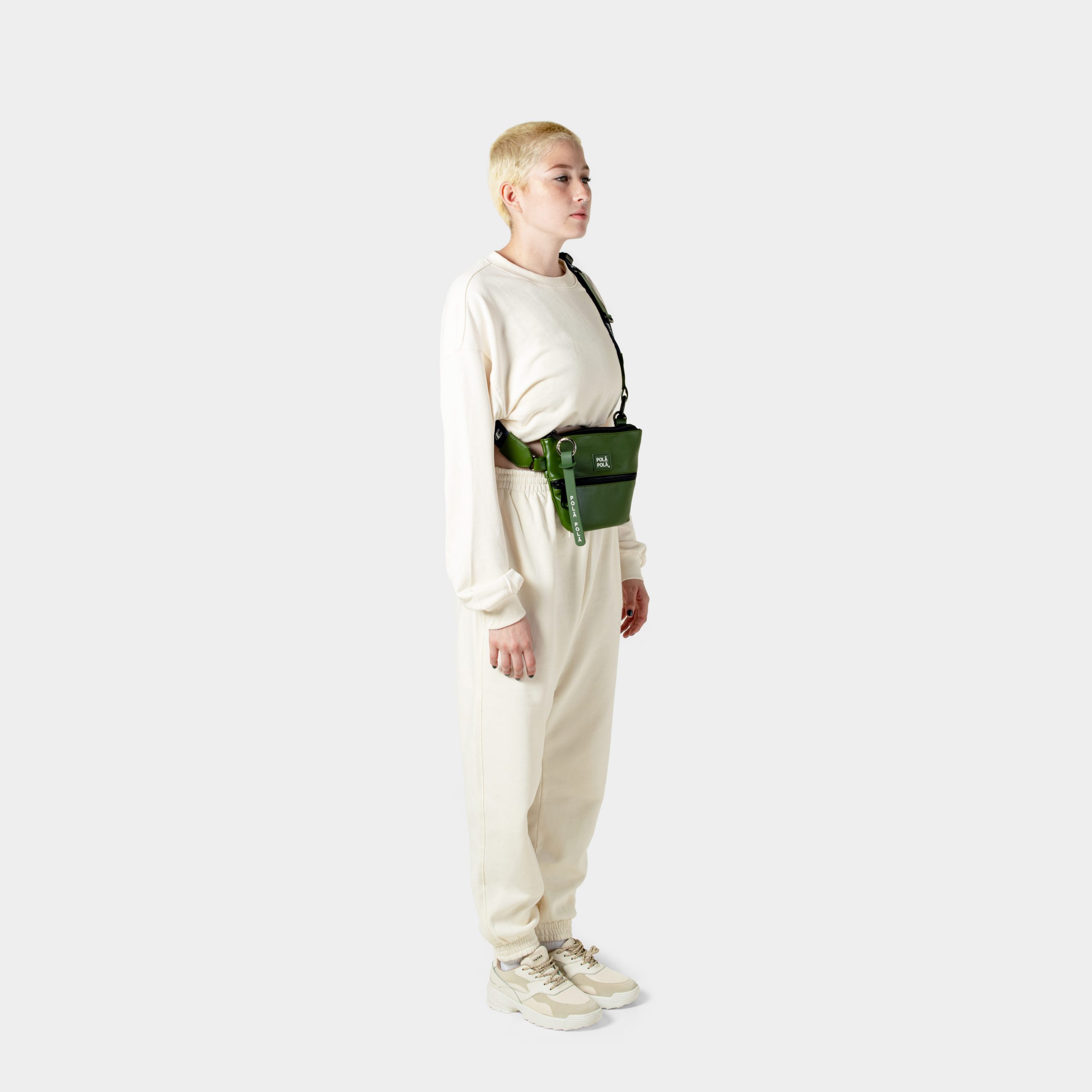 Neutral, comfortable and stylish. The Cross-Fanny Pack is designed to be your new basic for carrying essentials. With a front and an external zipper. Original handle design to use it as a cross body, with a ring to add another accessory such as our coin purse.