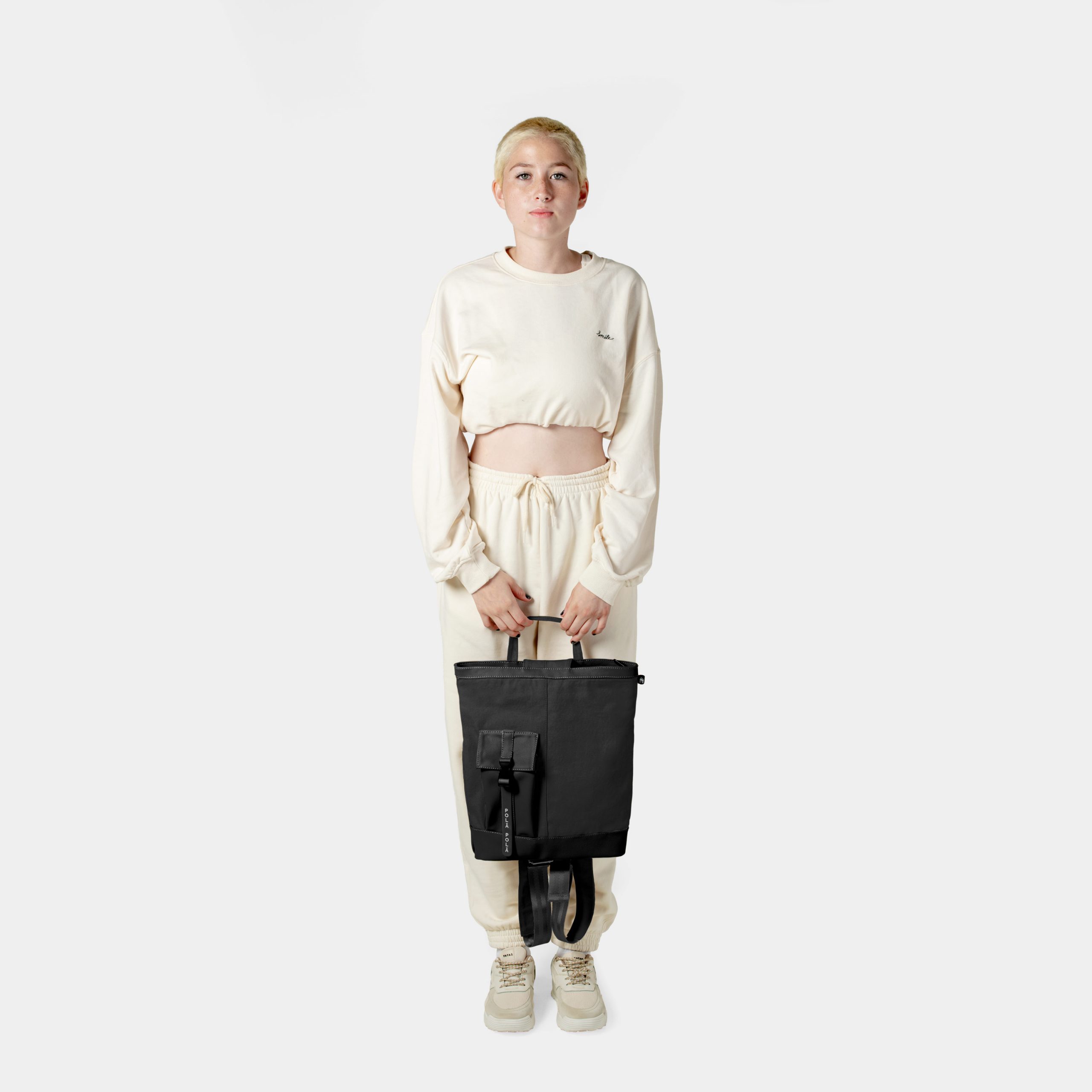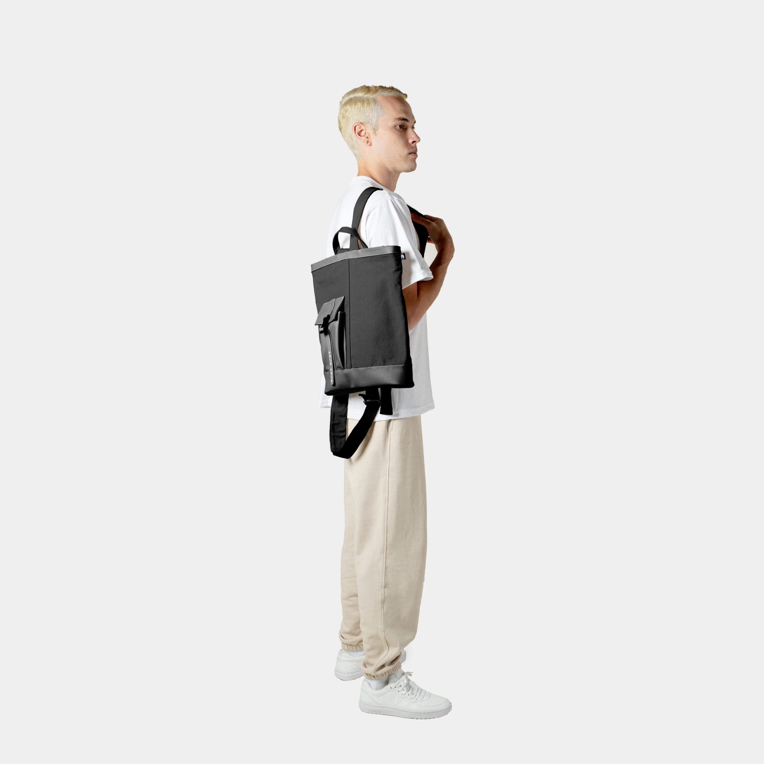 - Silhouette inspired by the tote bag that accompanies you wherever you go with the peculiarity that characterizes us. That’s right, this model can be converted from a tote bag to your daily backpack. With a double handle and a simple conversion system.